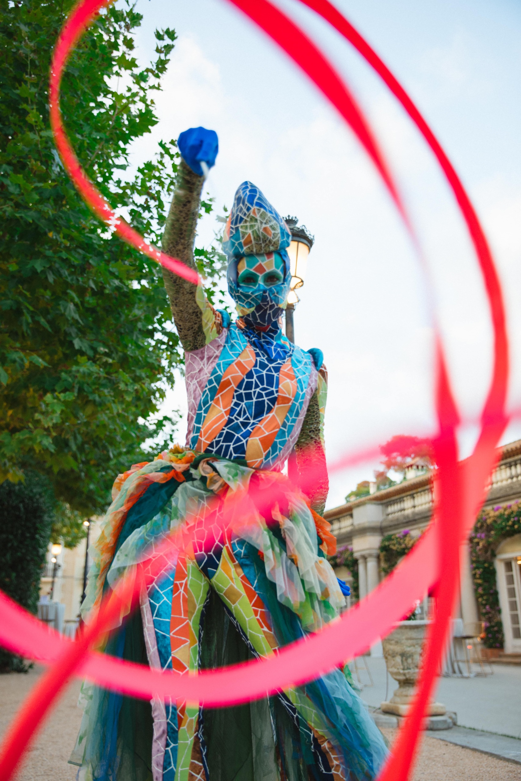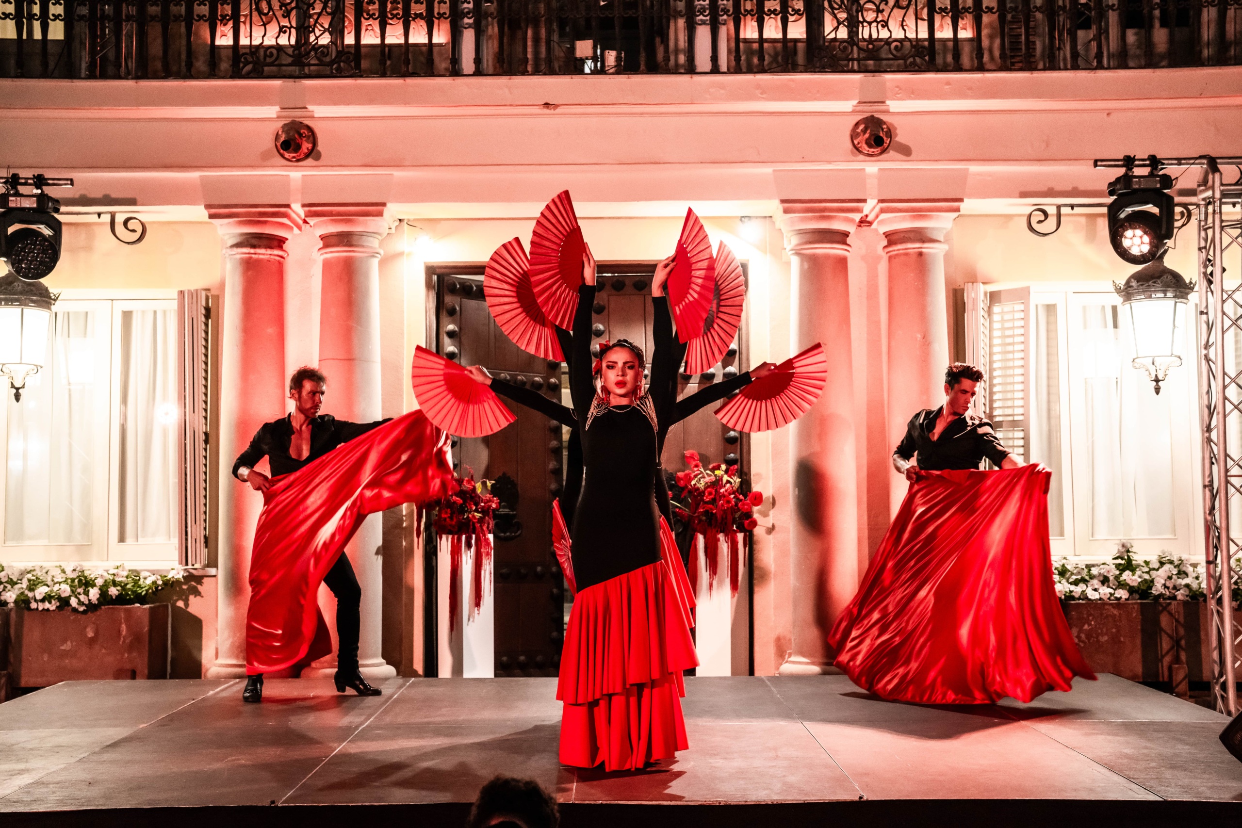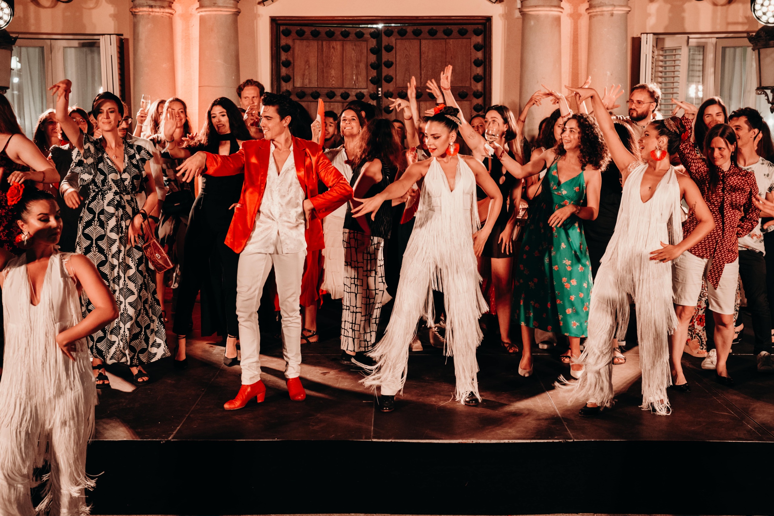 Set against the grandeur of this historic Catalan estate, the evening celebrated connection, culture, and creativity – combining authentic Spanish entertainment with contemporary production design. Guests enjoyed a dynamic mix of performances, from a live DJ and modern flamenco show to a roaming guitarist and stilt walkers who filled the courtyards with movement and energy.